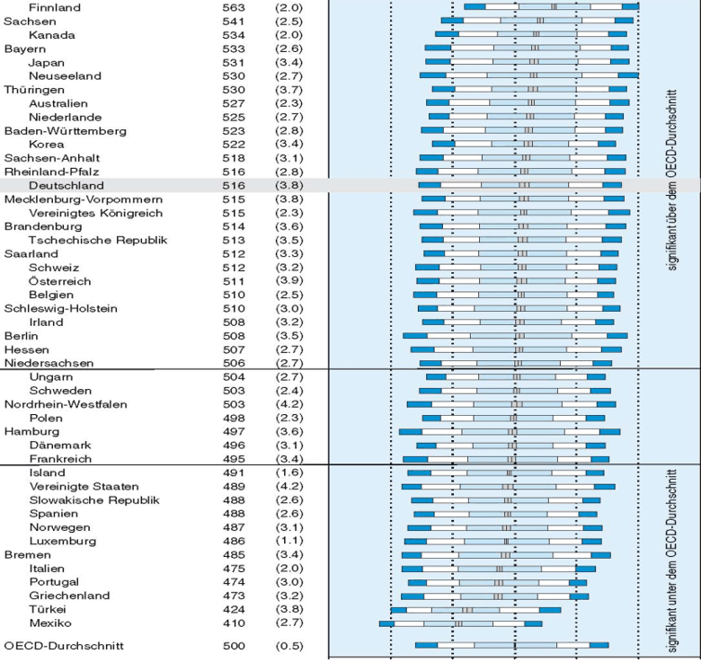 Migranten schneiden im deutschen Schulsystem deutlich schlechter ab als in fast jedem vergleichbaren Schulsystem ausserhalb von Deutschland (Diefenbach, 2008, Entorf & Minoiu, 2005).