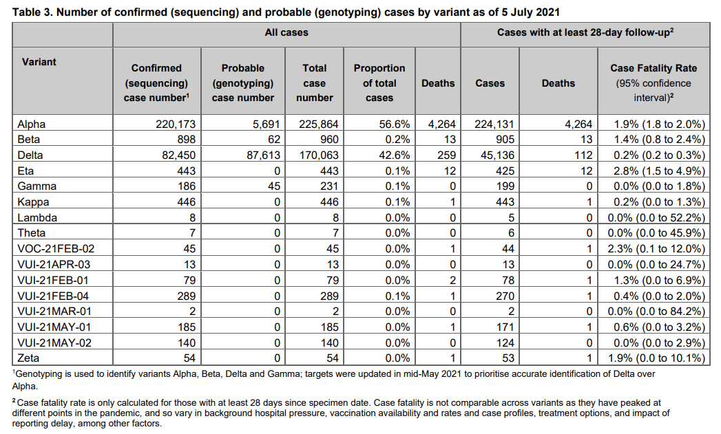 Die Variante ist also um LÄNGEN harmloser als die beiden anderen und als die mittlerweile ausgestorbene Variante aus Wuhan, deren CFR bei rund 1,0 lag.