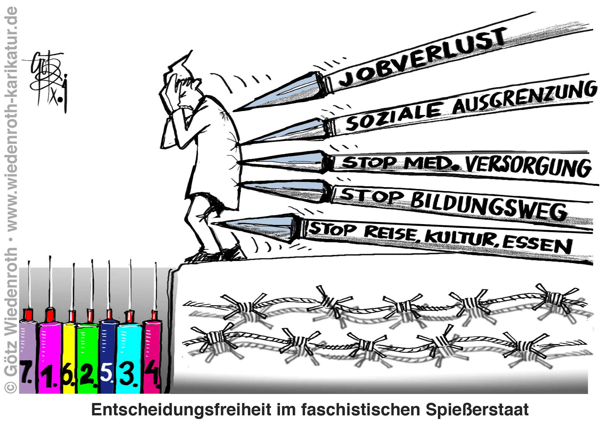 „Wie maßgebliche Juristen festgestellt haben, bedeutet dies, daß der Staat nicht bereit ist, die Verantwortung für einen Impfstoff zu übernehmen, der seine Testphase noch nicht abgeschlossen hat. Gleichzeitig versucht er mit allen Mitteln, die Bürger zur Impfung zu zwingen, indem er sie andernfalls aus dem gesellschaftlichen Leben ausschließt und nun mit dem neuen Dekret, das Sie bestätigen sollen, ihnen sogar die Arbeitsmöglichkeit nehmen will.