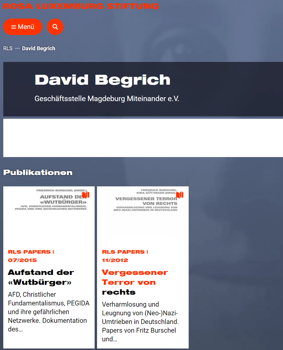 Bleiben wir noch ein wenig bei David Begrich, der Miteinander-Mitarbeiter, dem Rechtsextremismus-Experten des MDR und Soziologen der ARD. Er ist einschlägig. Er schreibt in Pamphleten der Rosa-Luxemburg-Stiftung, er ist so etwas, wie ein Dauerkostgänger, lebt eine ganz besondere Form von Demokratie Leben!, bei der es Bares von Ministerien zum Kampf gegen den politischen Gegner ausgereicht wird, wie z.B. im Fall der Arbeitsstelle Rechtsextremismus, die dann später zu „Miteinander“ emporgefördert wurde, man findet ihn natürlich auch bei der Gegneranalyse, von der wir hier berichtet haben. Man kennt sich. Sie kennen sich, die auf Steuerzahlers Kosten leben, man könnte auch sagen, die am Steuerzahler schmarotzen. Man findet Begrich bei der Taz, der Heinrich-Böll-Stiftung, wo immer es Steuergeld abzugreifen gibt, scheint Begrich zur Stelle, scheint er zu finden zu sein, nur eines findet man nicht, das, was Begrich angeblich zum Experten macht, seine Qualifiaktion. Aber Qualifikation ist nicht notwendig, um bei der ARD oder beim MDR Experte zu werden. Im Gegenteil: Qualifikation ist hinderlich im Expertennetzwerk von Linksaußen…