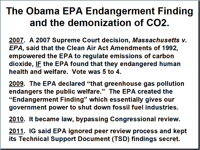 Alle Klimwandel-Maßnahmen, die angeblich dazu gedient haben, die Menschheit vor diesen „Giften“ zu retten, sind damit hinfällig, haben keine rechtliche Basis mehr. Ein überfälliger Schritt, wenn man bedenkt, dass Obama die „Endangerment Findings“ ohne die dazu notwendigen gesetzlichen Schritte einzuhalten, einfach umgesetzt hat [siehe Kasten].